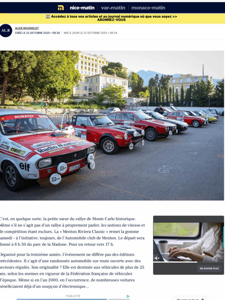 3° Menton Riviera Classic Nice Matin du 23.10.2025