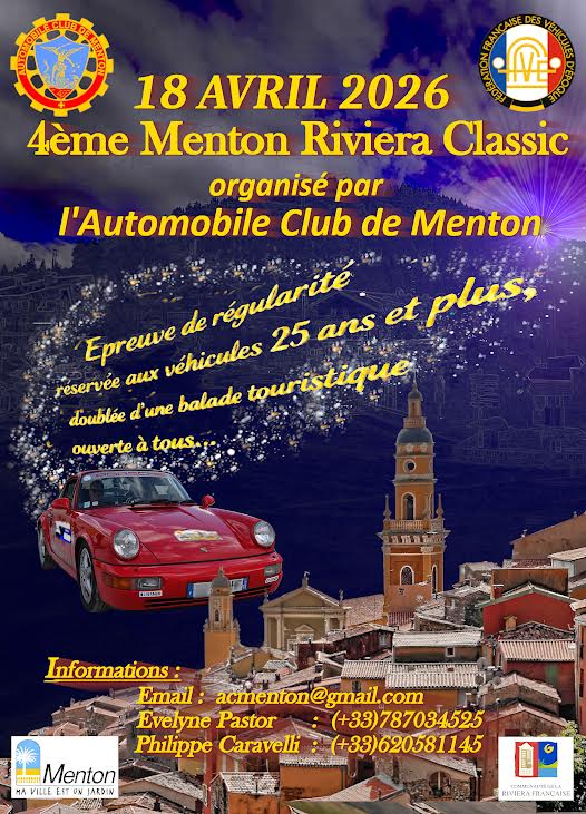 Le 4° Menton Riviéra Classic est officiellement prévu le 18 avril 2026